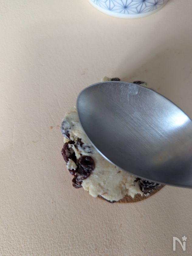 クッキーにきっちり貼り付けたい場合は、温めたスプーンでクリームチーズを溶かすとよい。