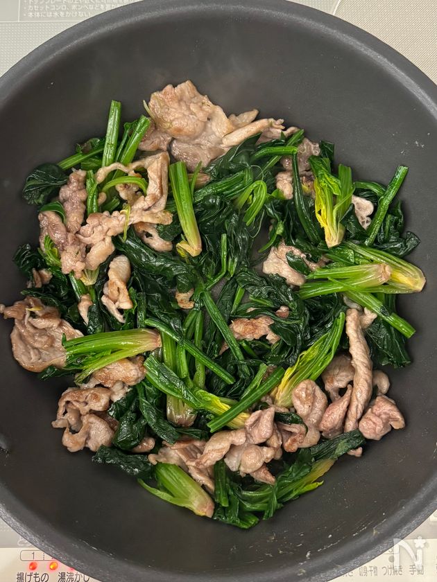 ほうれん草と豚こま《とろ玉♡だしポン炒め》