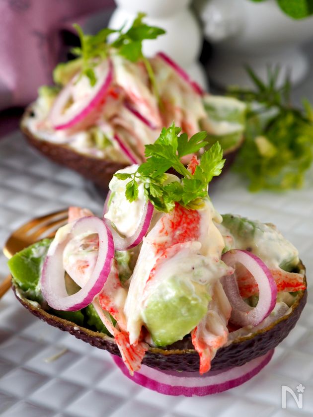 【5分で簡単前菜】アボカドとカニかまのヨーグルトカップサラダ