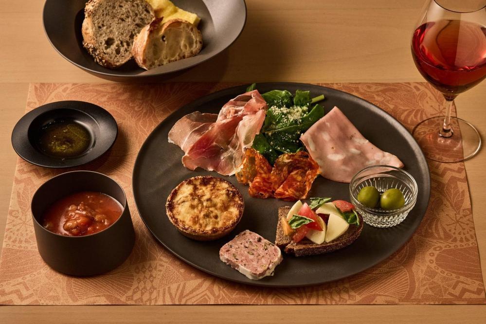 3階アリビアーモ バーでは、ホリデー仕様のディナーセット「ARRIVIAMO BAR APERICENA」が登場します。前菜からデザート、カクテル、そして最後の一杯のコーヒーまで、五感を満たす贅沢な夜時間を演出。このプランならではの特別なフードがプレートスタイルで提供され、心温まるひとときを過ごせます。