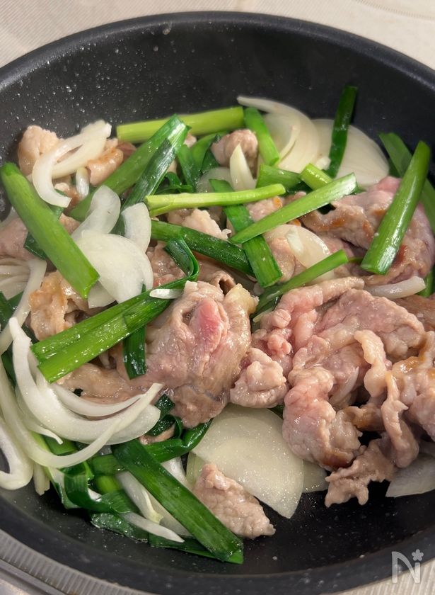 玉ねぎがしんなりしたら、にらと【A】を加える。