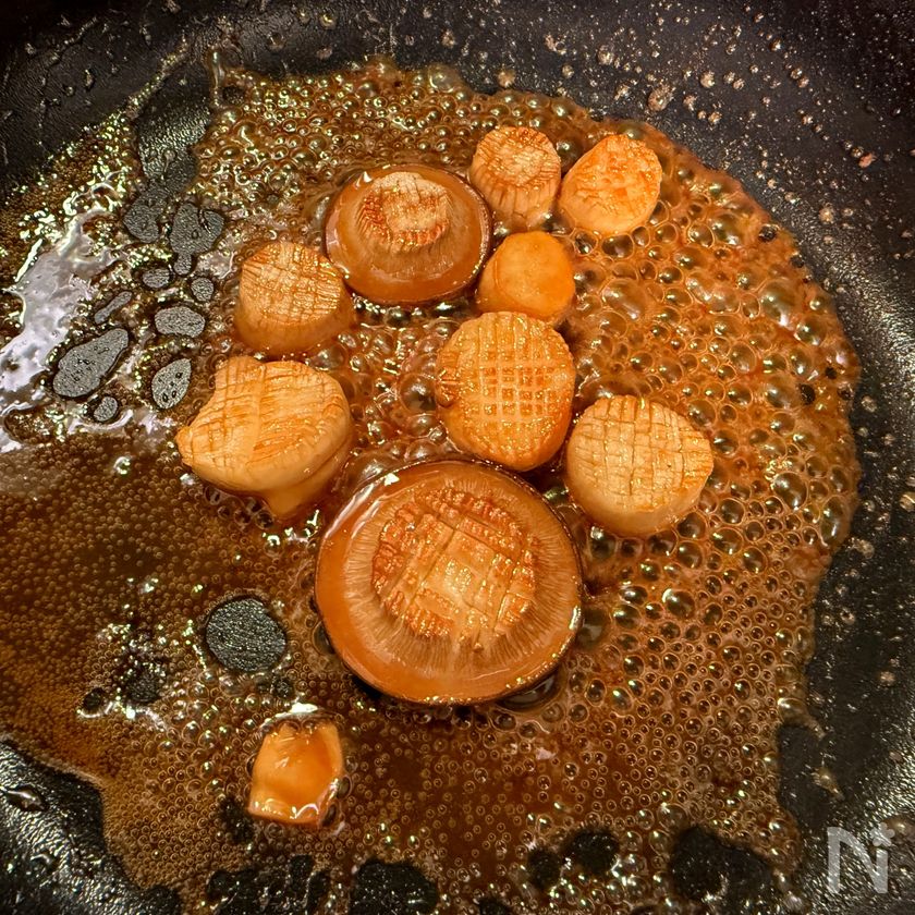 ※次の工程でタレが煮詰まりすぎないように、上がりすぎたフライパンの熱を少し冷まします!