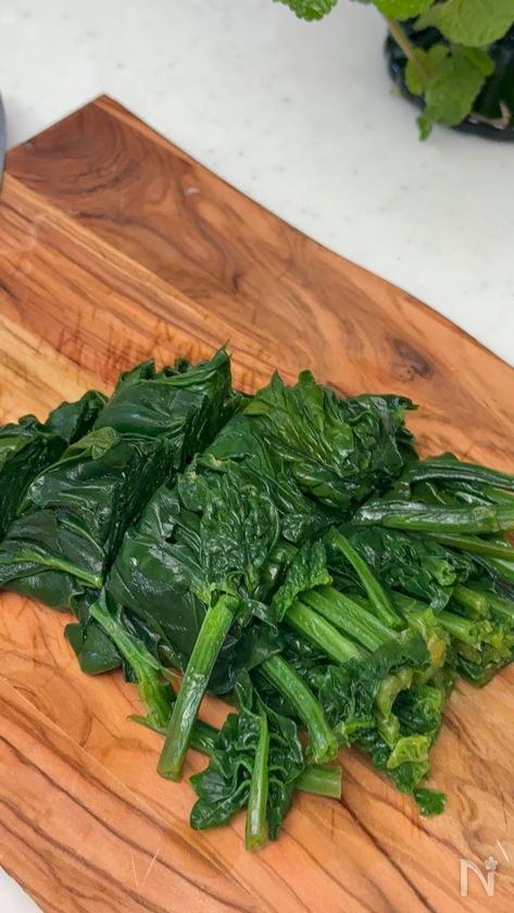 (1) ほうれん草の根元を湯に30秒入れて、その後全体を入れて更に30秒茹でる。冷水にとり、絞って3cmほどの長さに切る。