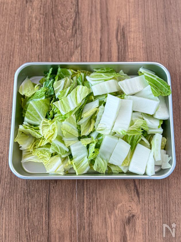 (1) 白菜は2cm幅に切る。