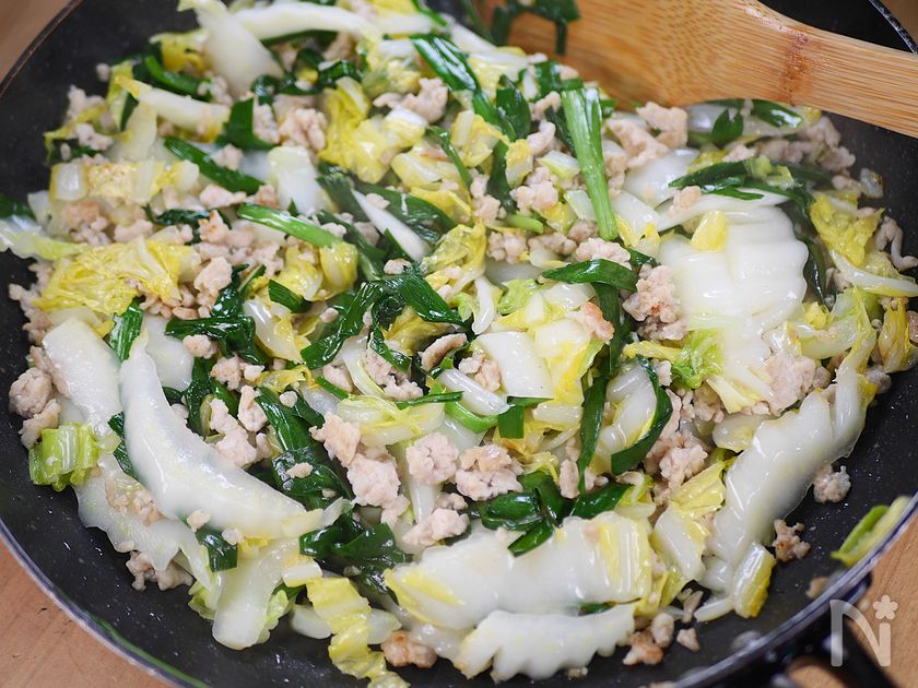 ✅先に白菜だけ炒め、ニラはさっと炒めるだけでOK