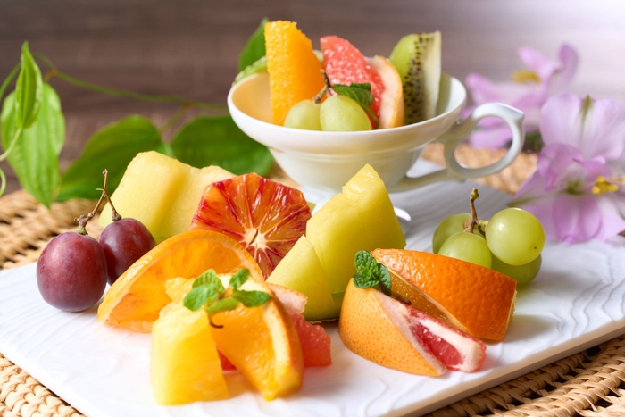 デザートも充実。市場直送の旬のフルーツの盛り合わせや、フルーツショートケーキをはじめとする約10種のケーキなど、一度のご利用では食べ切れないほどのデザートを取り揃えました。ハーゲンダッツ アイスクリームはバニラ・グリーンティー・ストロベリーの人気3種をご用意いたします。