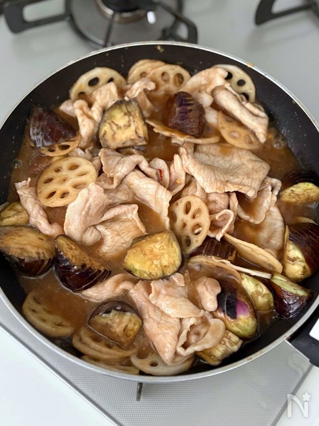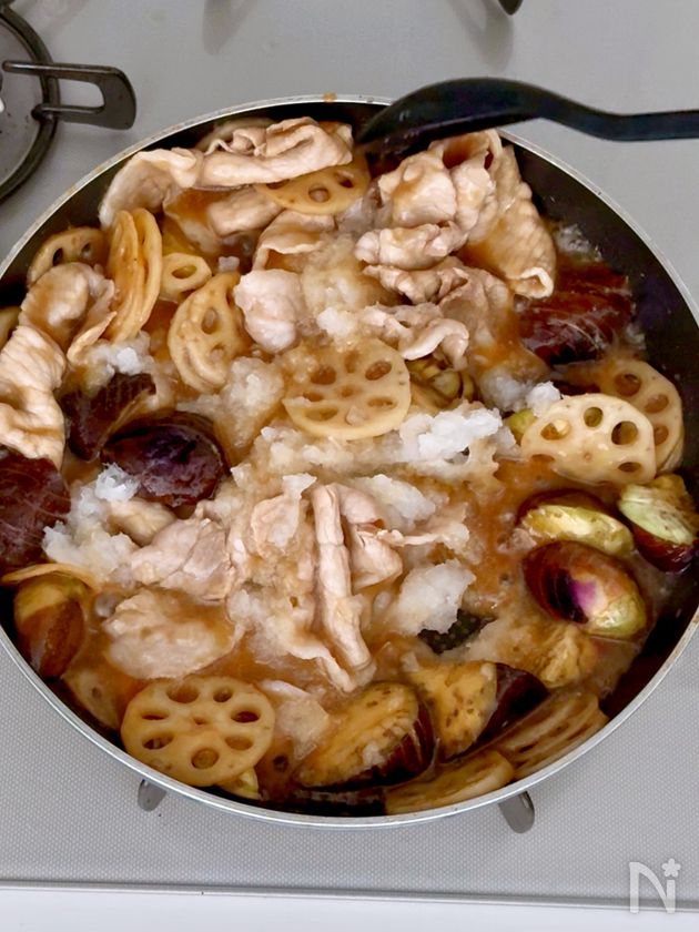 [ホット豚しゃぶ]豚と蓮根となすのみぞれ煮!体が温まるおかず