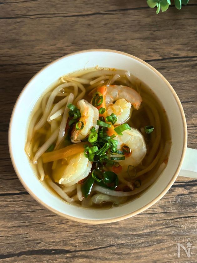 冷凍むきえびと野菜の中華風スープ