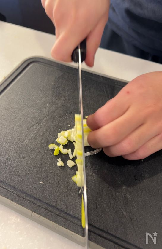 (下準備) 長ネギはみじん切りにする。