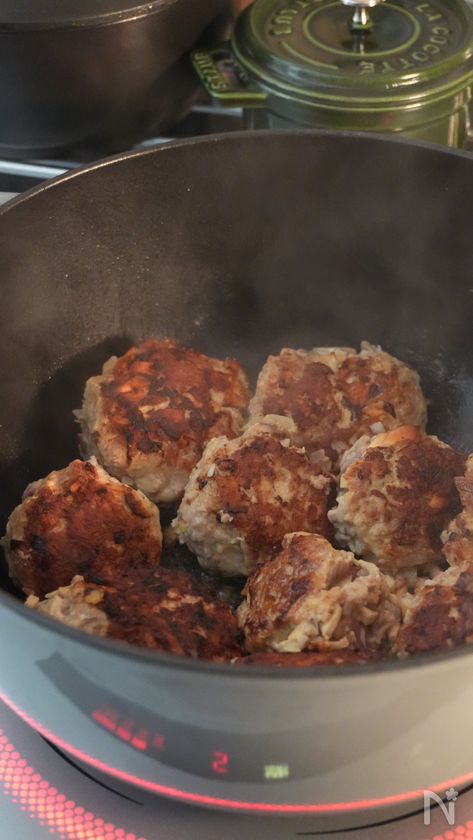(2) 鍋にごま油を引き、2を一口大に丸めながら並べ入れる。中火で熱し、表面に焼き色がつくまで焼く。