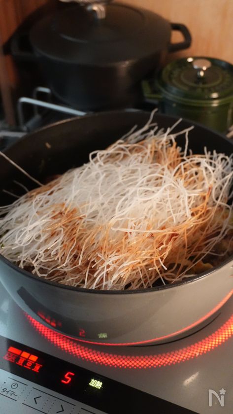 (4) 蓋を取り、春雨をほぐすように全体を混ぜる。さらに4分ほど煮て、春雨にしっかり旨味を吸わせたら完成!