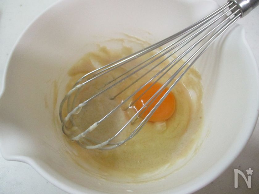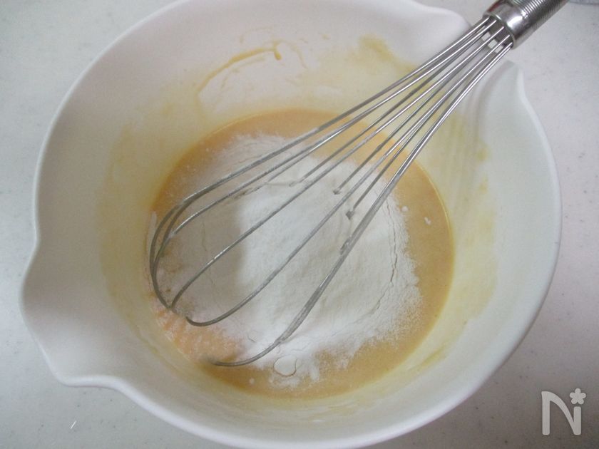 米粉を加えたら泡立て器でしっかりと混ぜてくださいね!
