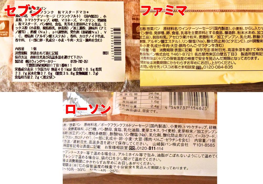 パッケージの裏にある製造者の部分を確認すると、セブン‐イレブンはスウィングベーカリー、ローソンは山崎製パン、ファミリーマートは敷島製パンと、3社それぞれ異なるメーカーが担当していました。製造元が違うとなると、ソーセージやパン生地の方向性にも個性が出そうですね。