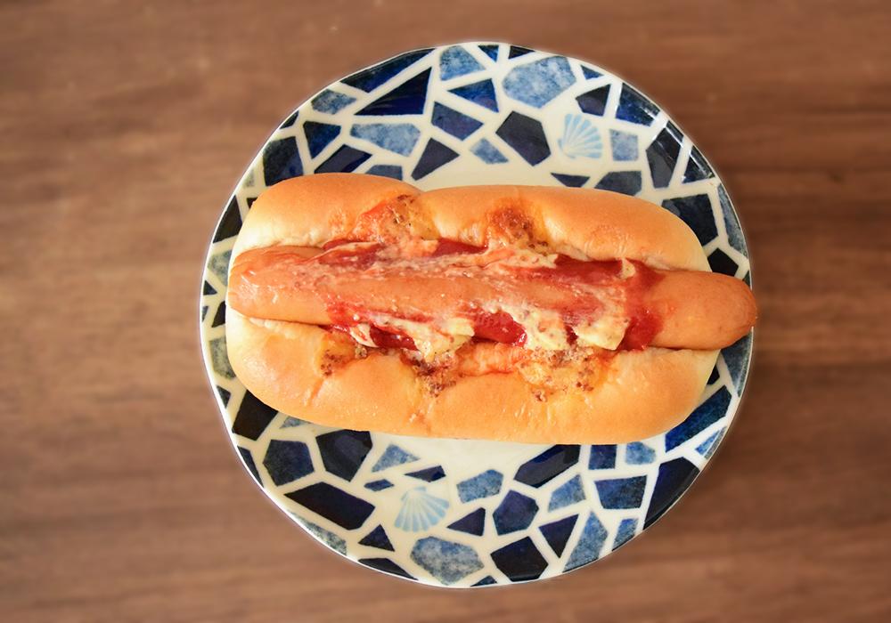 粗挽きポークソーセージの上に、ケチャップとからしマヨソースをトッピングしたシンプルな一品。なお、宮崎県・鹿児島県のファミリーマートでは取り扱いがないため注意。