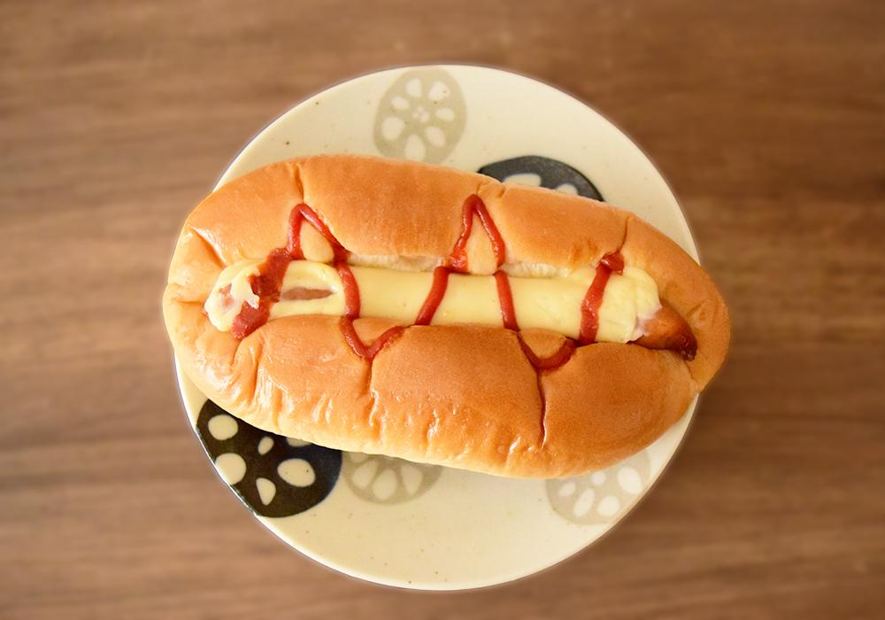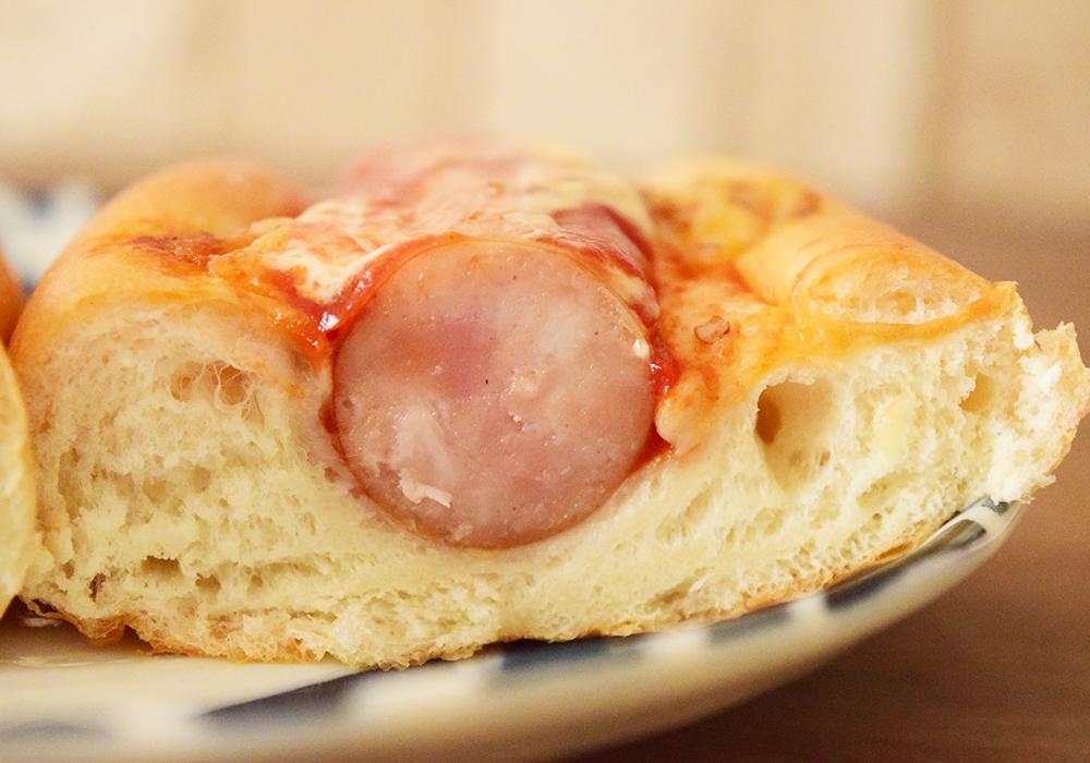 ふんわりとしたパン生地の上にソーセージがのり、味付けはトマトケチャップと粒マスタードマヨ。シンプルながらも王道感のあるソーセージパンです。