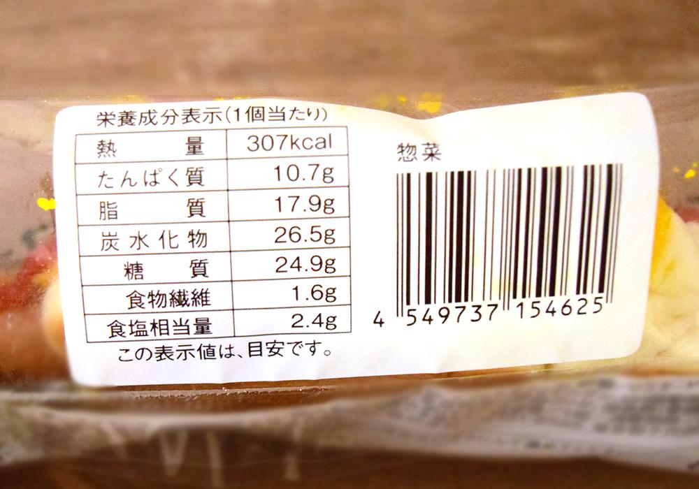 1個あたり401kcal、たんぱく質10.5g、脂質23.7g、炭水化物37.0g、食塩相当量2.2gです。