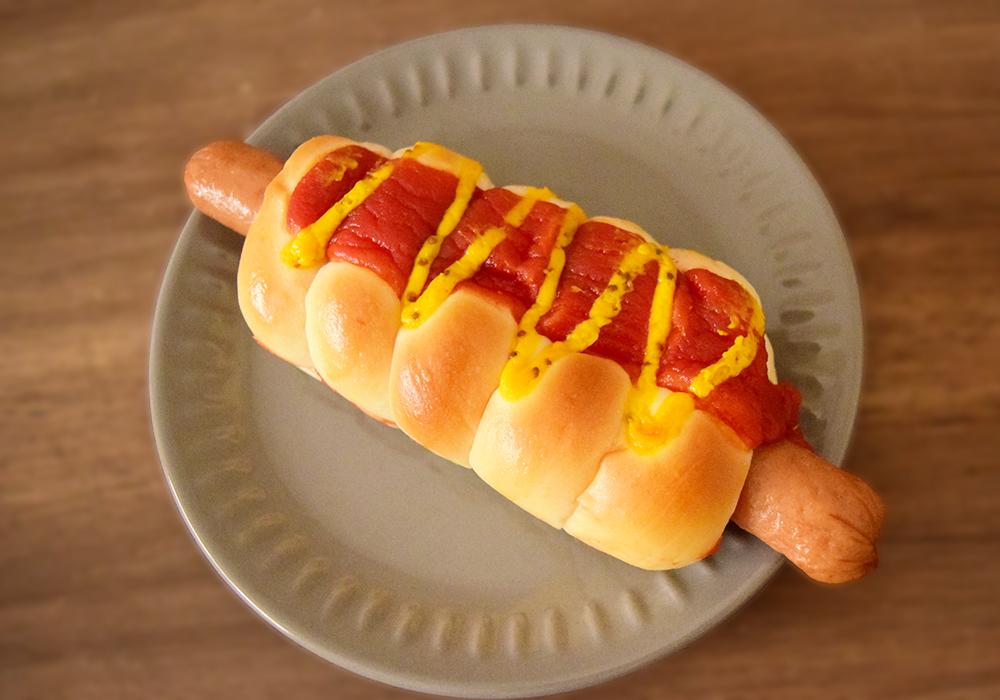 今回食べ比べた3品の中でもっともソーセージが細く、ややパンに埋もれがちな印象です。ただし、口に入れるとポリッとした良い食感があり、歯ごたえはしっかり。パン生地はややもっさりとしていて、全体としてはからしマヨソースの存在感が強めです。