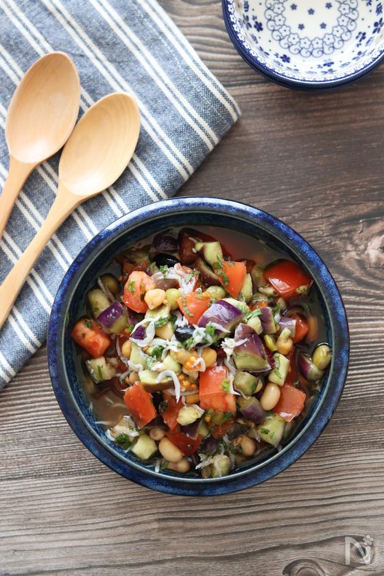 【和洋折衷なすとトマトのサラダ】スプーンでモリモリ食べられる