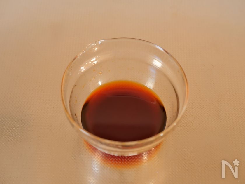 耐熱容器に【C】を入れて混ぜ、ラップをせずに受け皿にのせる。レンジ手動<500W>で1分30秒加熱する。一度取り出して混ぜ、再度1分加熱し粗熱を取る。