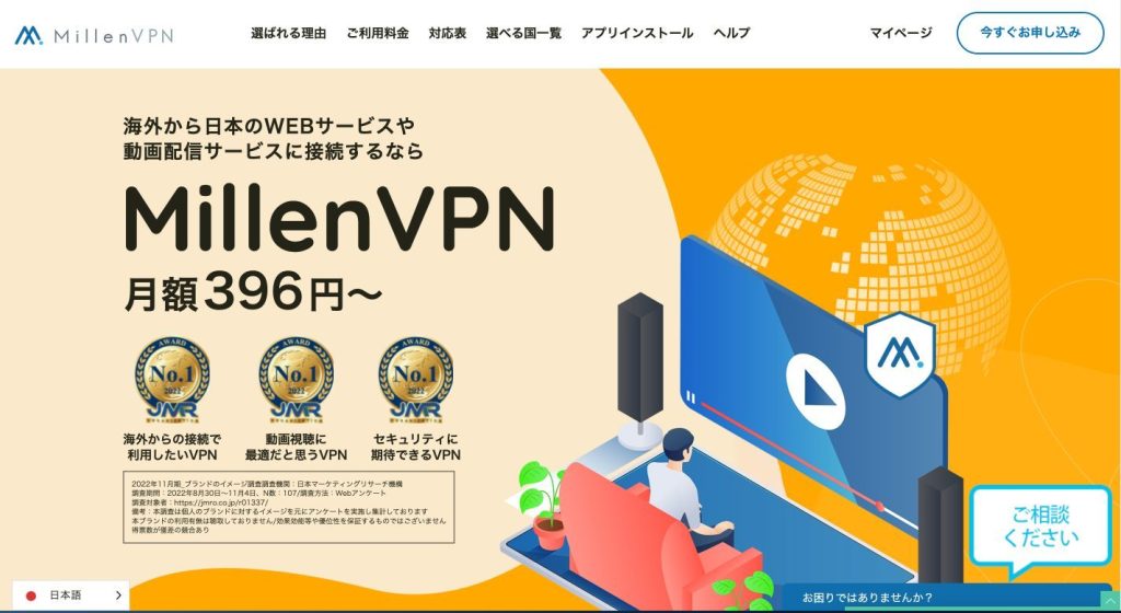 まずはMillenVPNの公式サイトにアクセスしましょう。