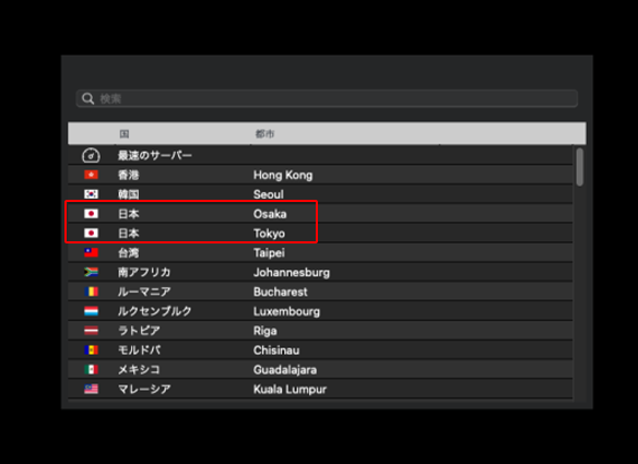 アプリを起動したら、早速接続するサーバーの地域を設定します。