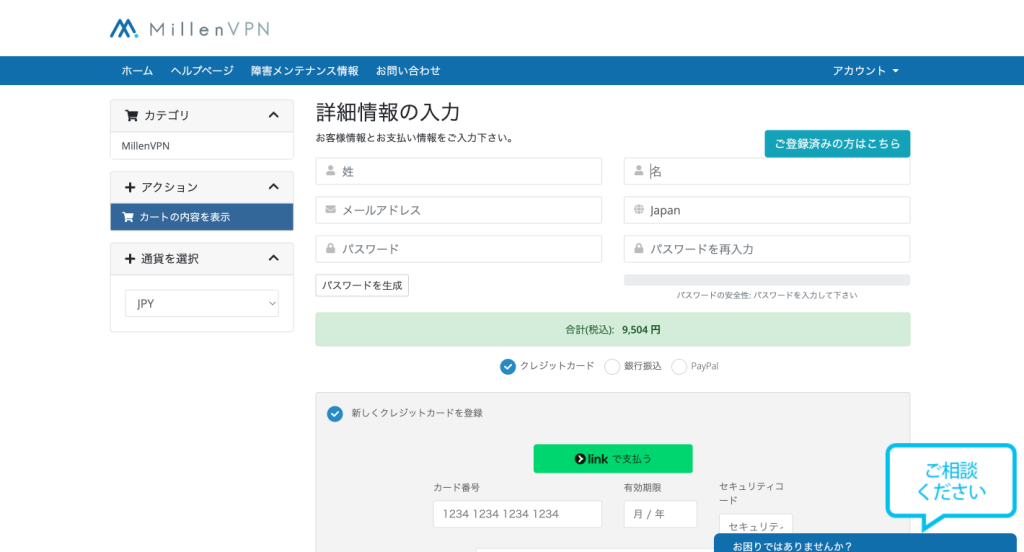 ステップ1 MillenVPN公式サイトから登録画面へ