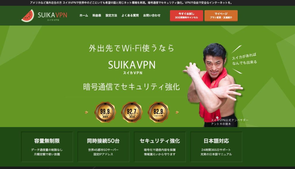 | VPN名 | MillenVPN 最もおすすめ! | NordVPN | ExpressVPN | SurfShark | スイカVPN |