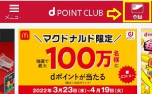 利用者登録の方法は、dポイントクラブ公式サイトに行き、右上のカードのマーク「登録」よりカード番号を入力します
