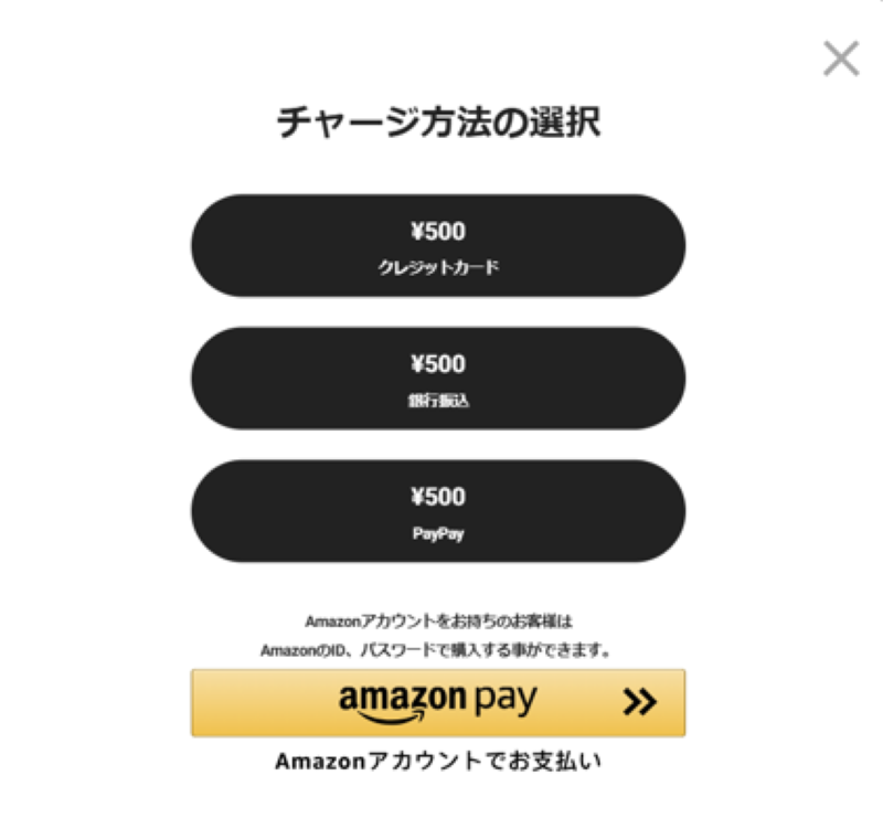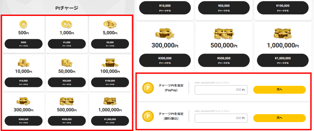 チャージしたいポイント数を選択するか、500pt~自分で好きなポイント数を入力しましょう。
