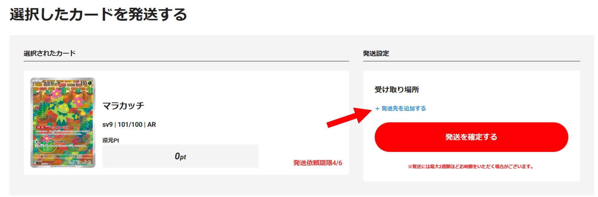 カードを発送してもらう場合は、受取先住所を登録して発送手続きを行ってください。