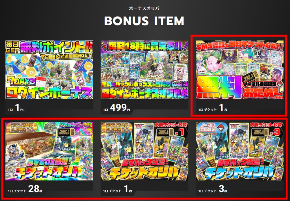 今回はSMS認証で入手したエクストレカチケットを使い、チケット1枚で引けるポケモンオリパを回してみます。