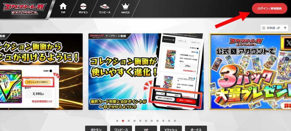 エクストレカはポケカとワンピースカードを取り扱うオンラインオリパサイト。