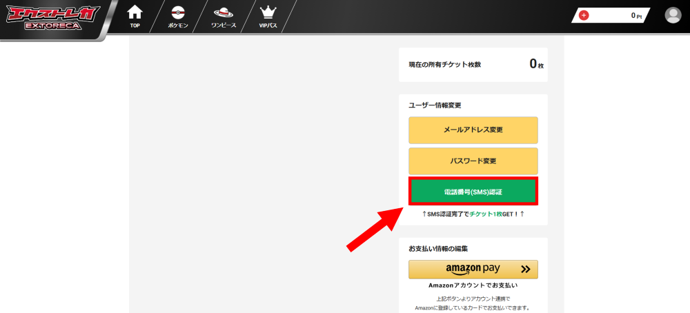 エクストレカにログイン後、「電話番号(SMS)認証」のボタンをクリック。