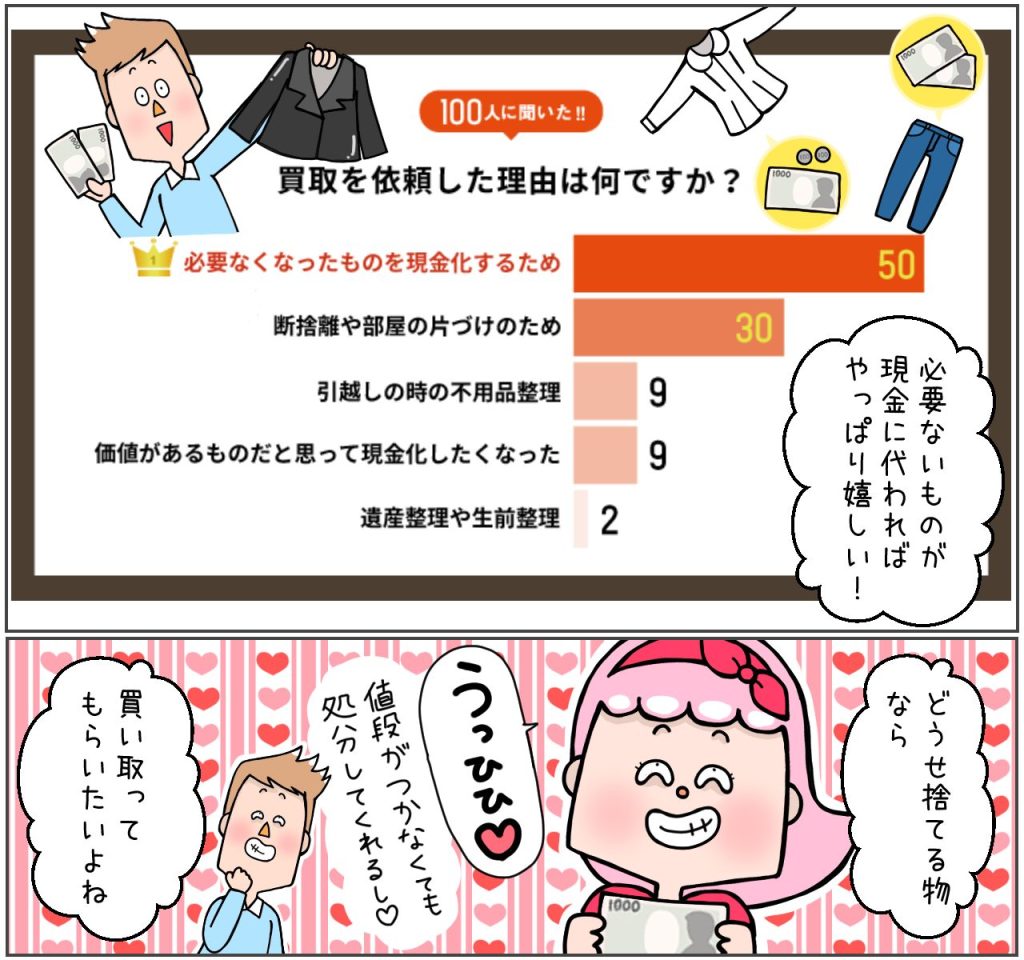 また、他で断られた物でも、しっかり査定し期待以上の価格で買取をしてもらえたことも満足度に繋がっているのかもしれません。