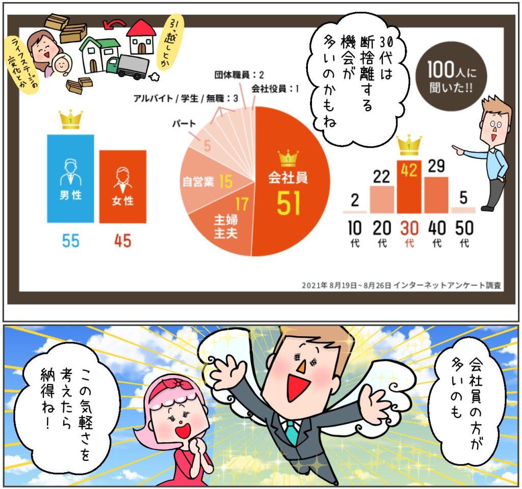 一番多かった年代は30代が約過半数ですが、これは30代の方が一番「物を減らしたい」と考えるタイミングが巡ってきやすいことが考えらます。