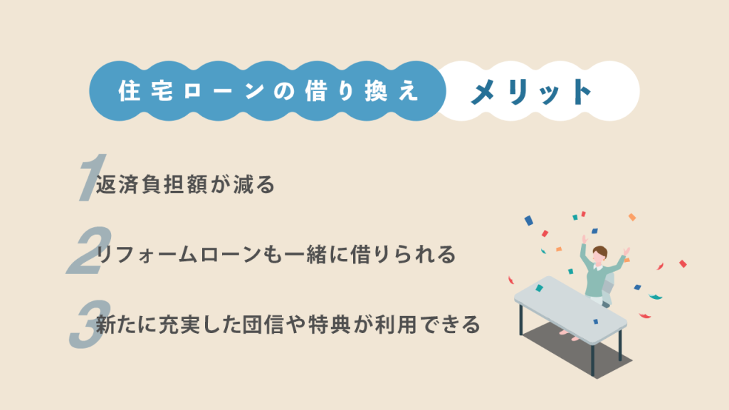 とくに実感しやすいのが返済負担額が減ることだと思いますが、それぞれのメリットについて詳しくお伝えしていきます。