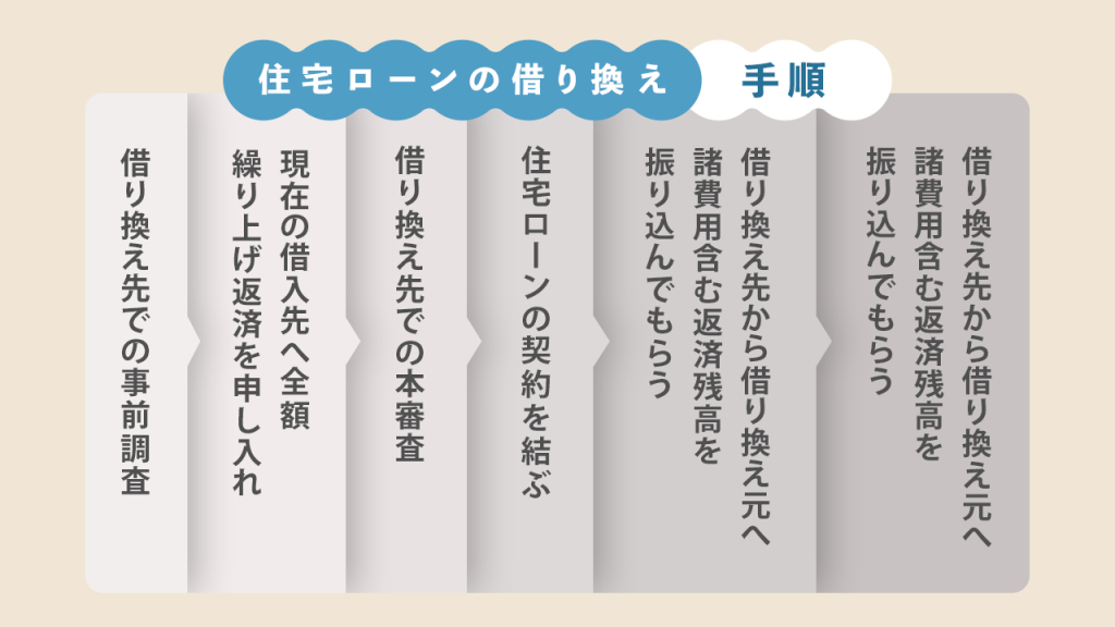住宅ローンの借り換えは、主に以下の手順を踏んで行います。