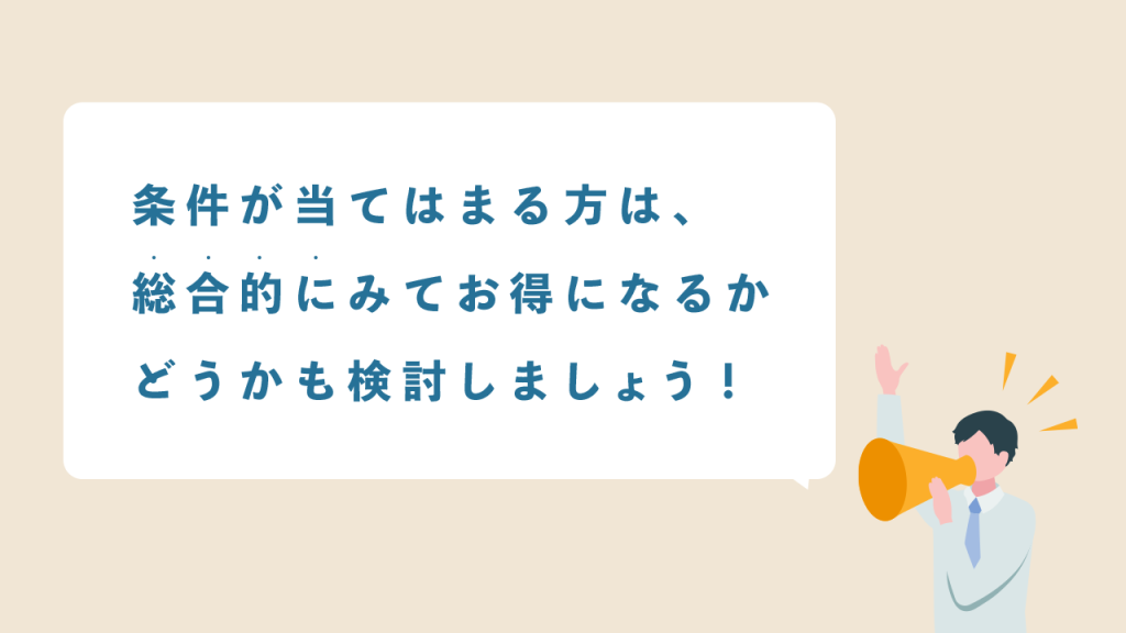 それらを含めても総合的にみてお得になるかどうかも検討しましょう。