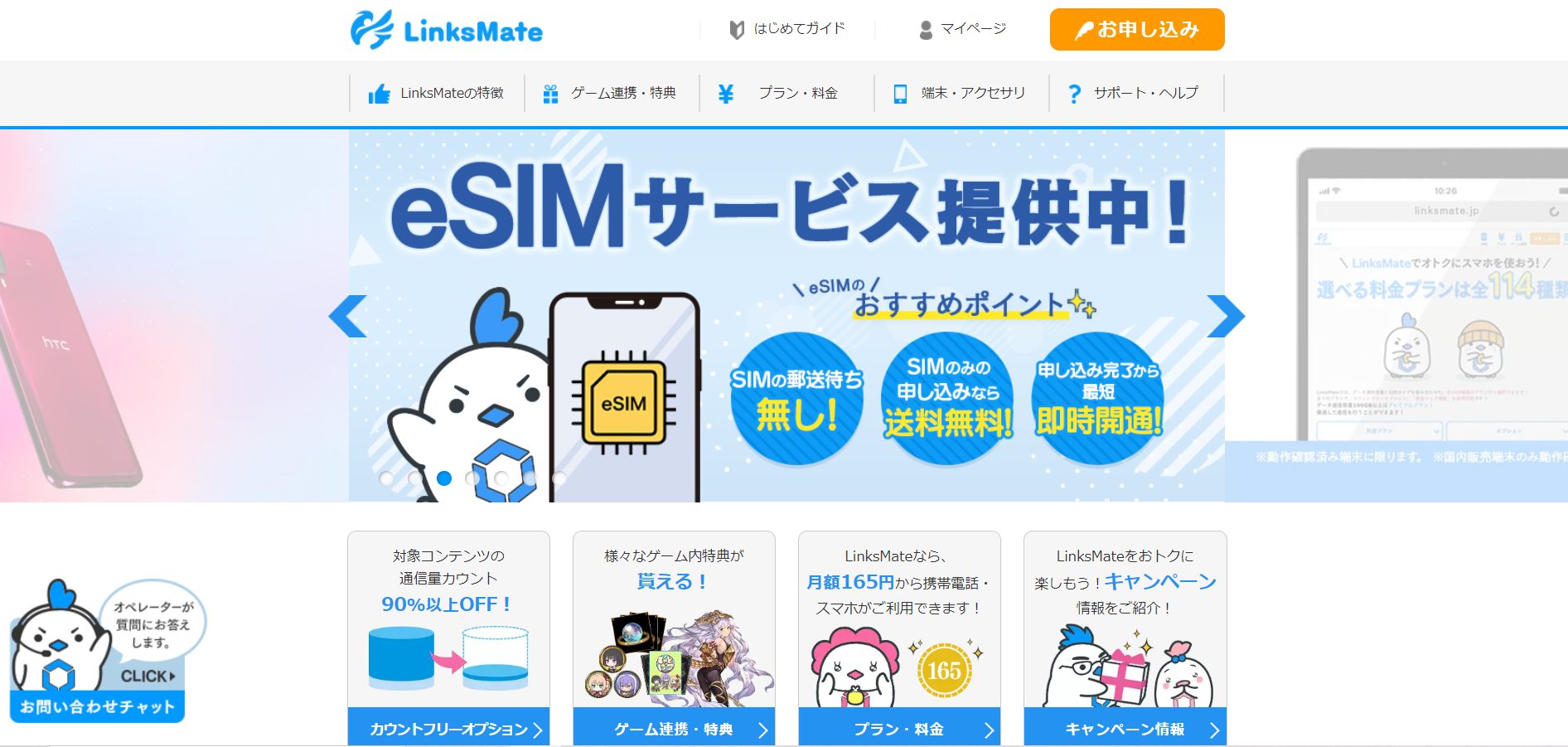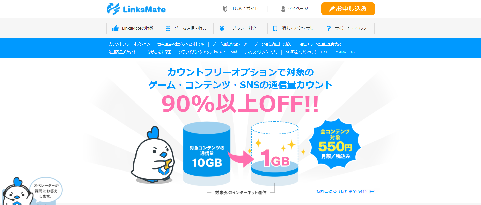 - LinksMate:オプション加入でアプリゲームやSNSの通信量がカウントフリー