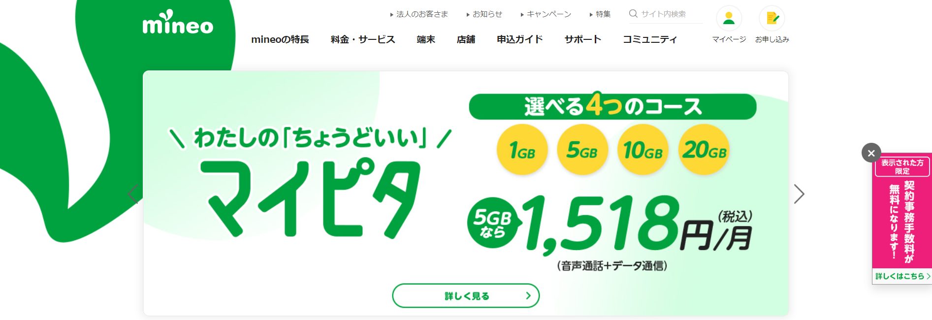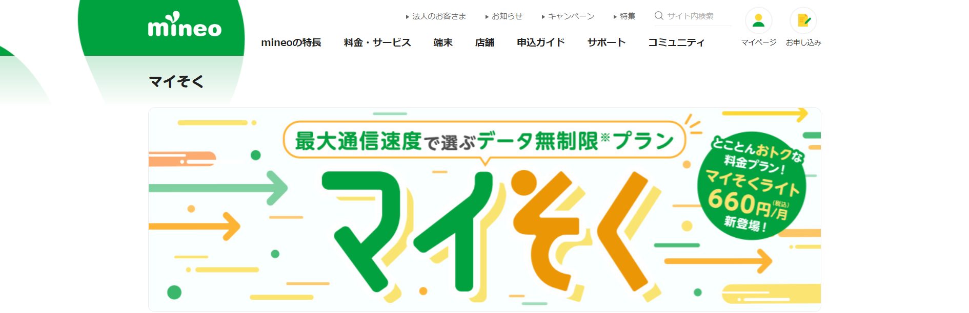 また、mineoというとパケット通信量を節約したり、他ユーザーや家族とパケットをシェアしたりするようなサービスが他社よりも充実している点が特徴で、当サイト経由の申し込みもとても多い人気プロバイダの1つです。