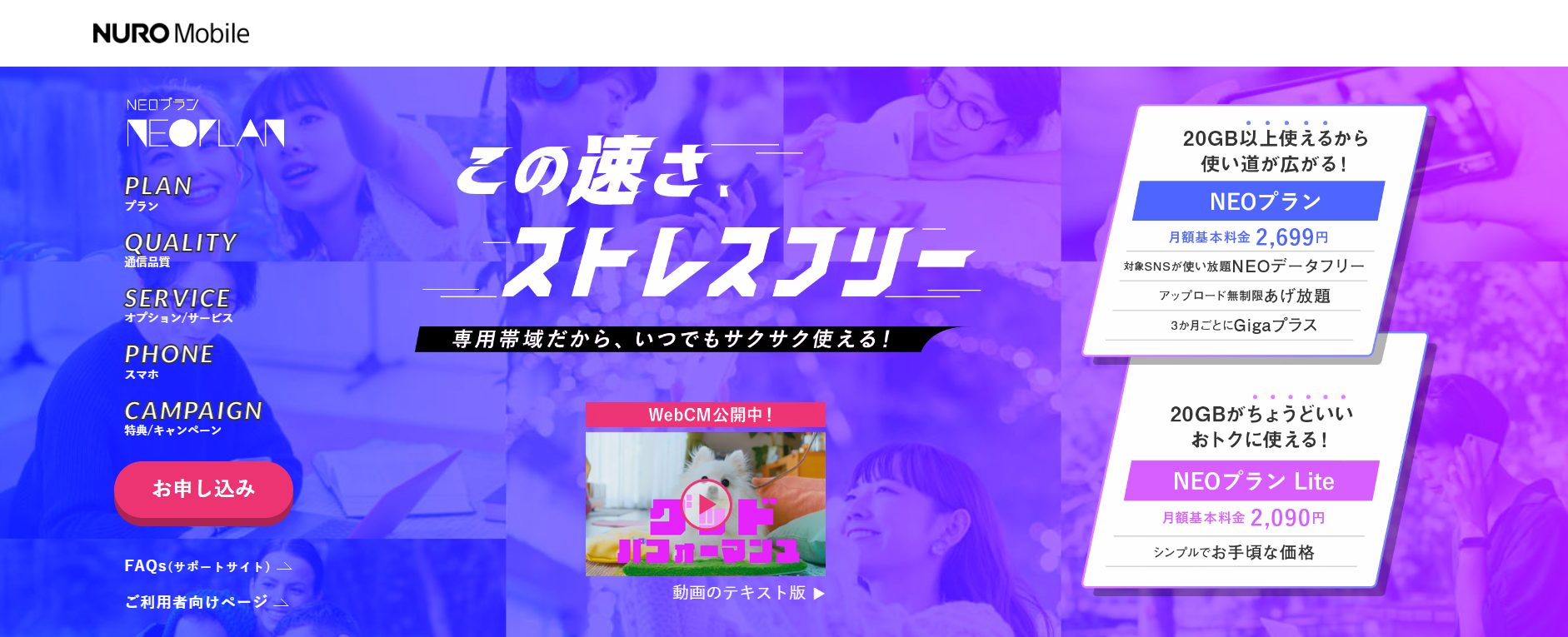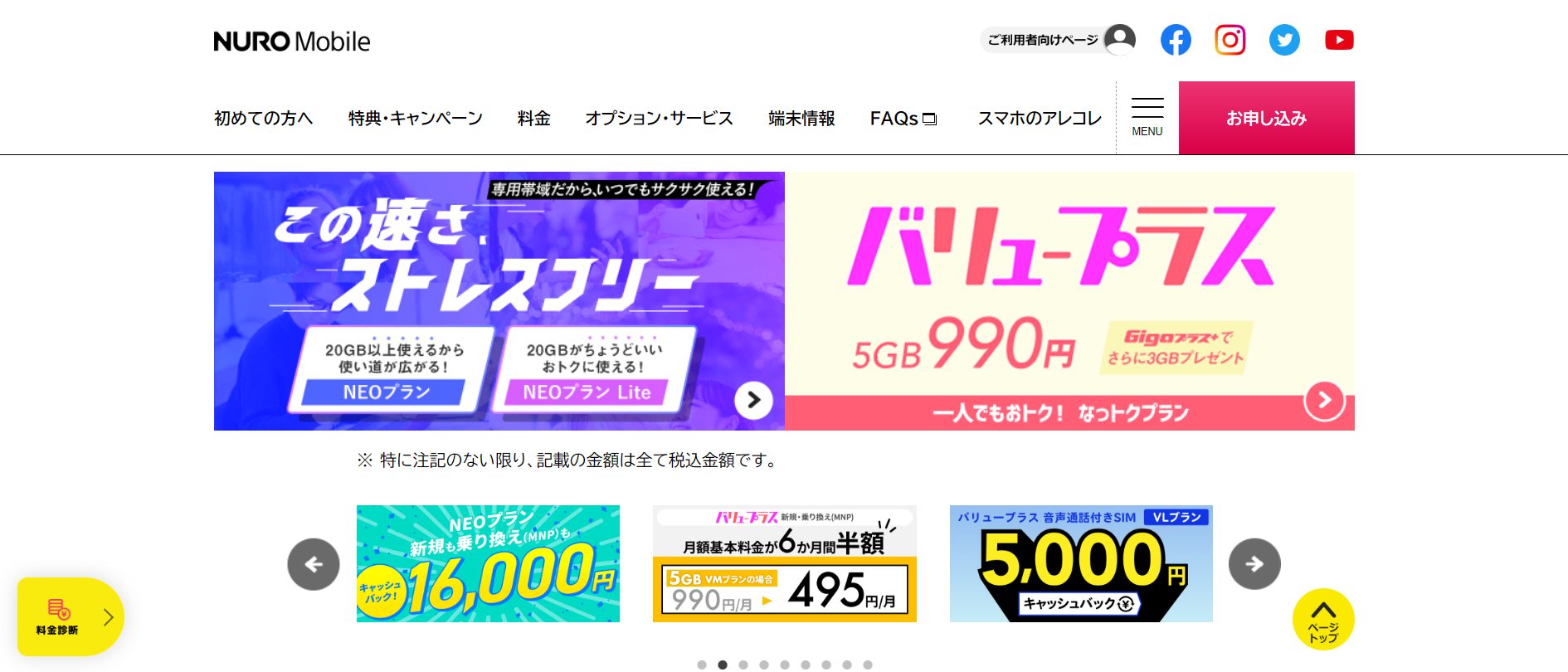 5GBと10GBのデータ利用におすすめなのが「NUROモバイル」です。