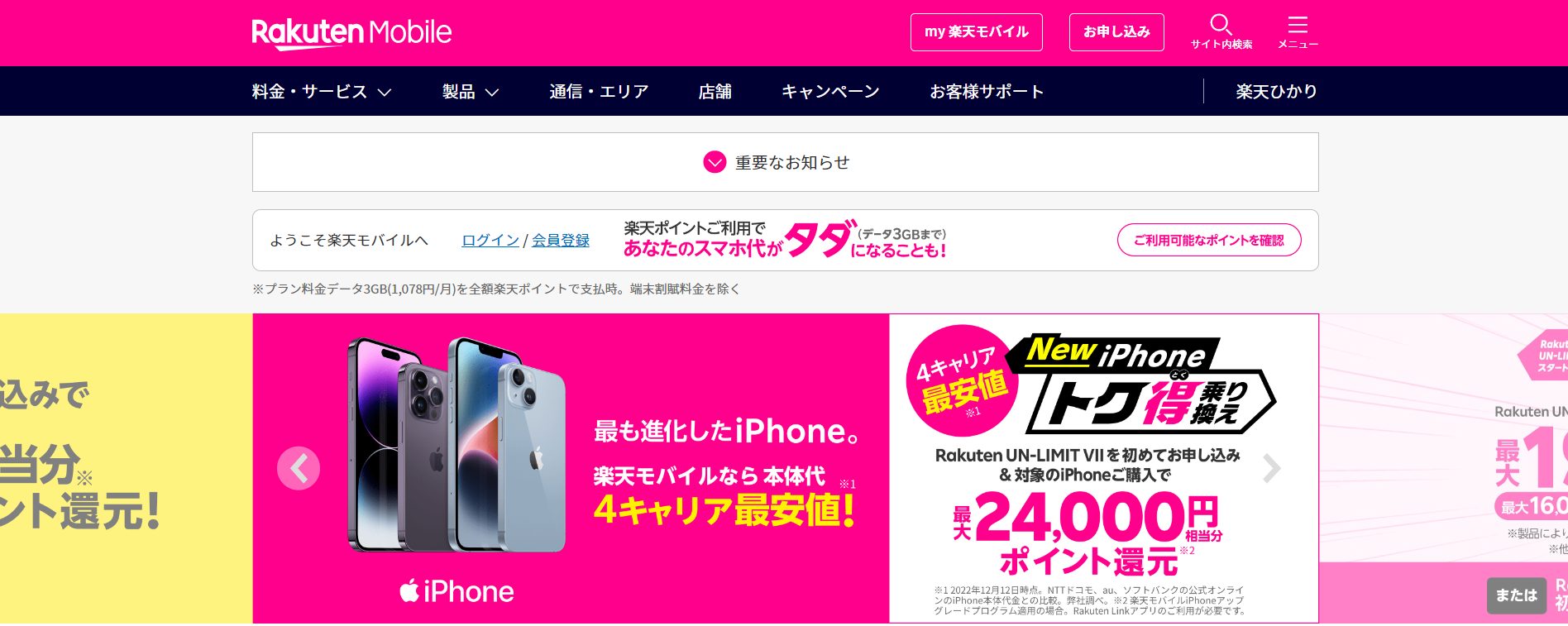 【Rakuten最強プランはじめてお申し込み特典】他社から乗り換えでポイントプレゼント