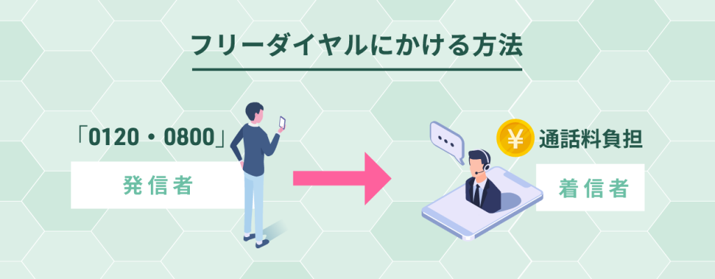 電話をかける人が最初に「0120」や「0800」の番号をつけることで、電話を受けた会社側が通話料を負担します。