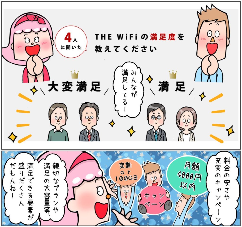 THE WiFiの利用者満足度は4人中全員が”満足・大変満足”と回答!