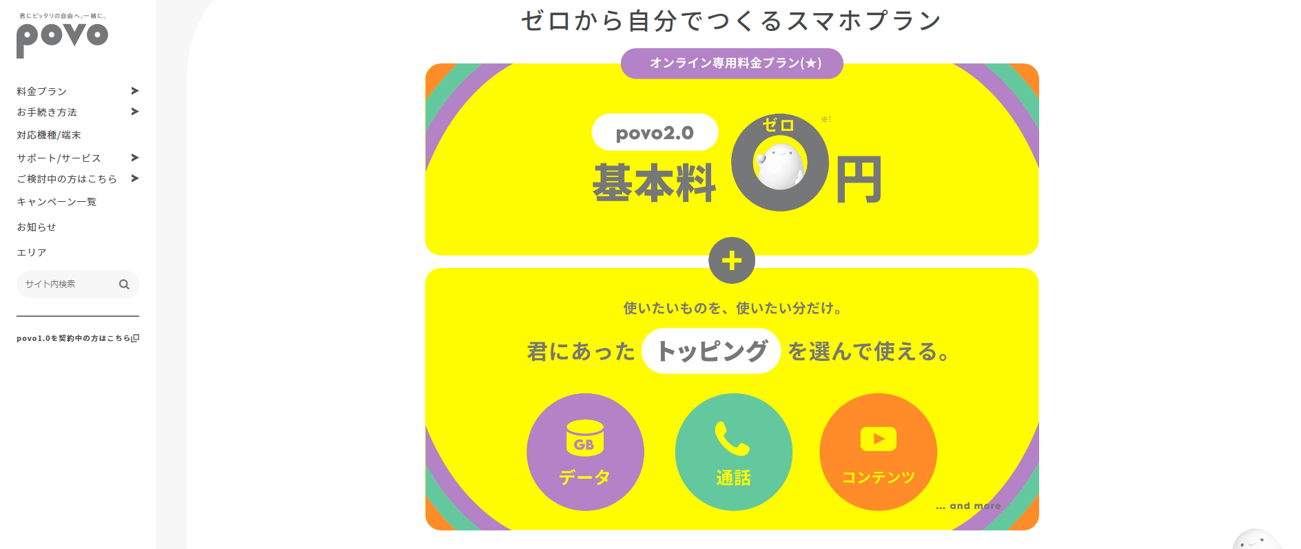 povo2.0は大手キャリアauの格安プランとして提供されているプロバイダです。