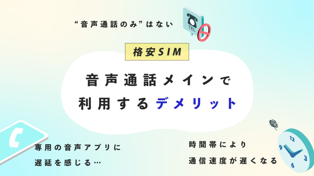 それでも音声通話機能付きSIMの月額料金は、大手キャリアよりも格段に安いためそれほどデメリットではないかもしれませんが、「音声通話のみで利用したい」という方にとっては少々デメリットに感じることもあるでしょう。