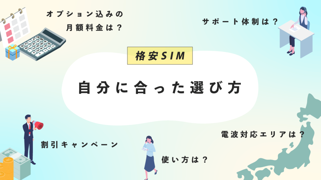 格安SIM各社では端末の割引や月額料金の割引、親子割、オプション料金の割引など様々なキャンペーンを打ち出していますので、ご自身に適用されるキャンペーンがあるかどうかもチェックし比較をするのがおすすめです。