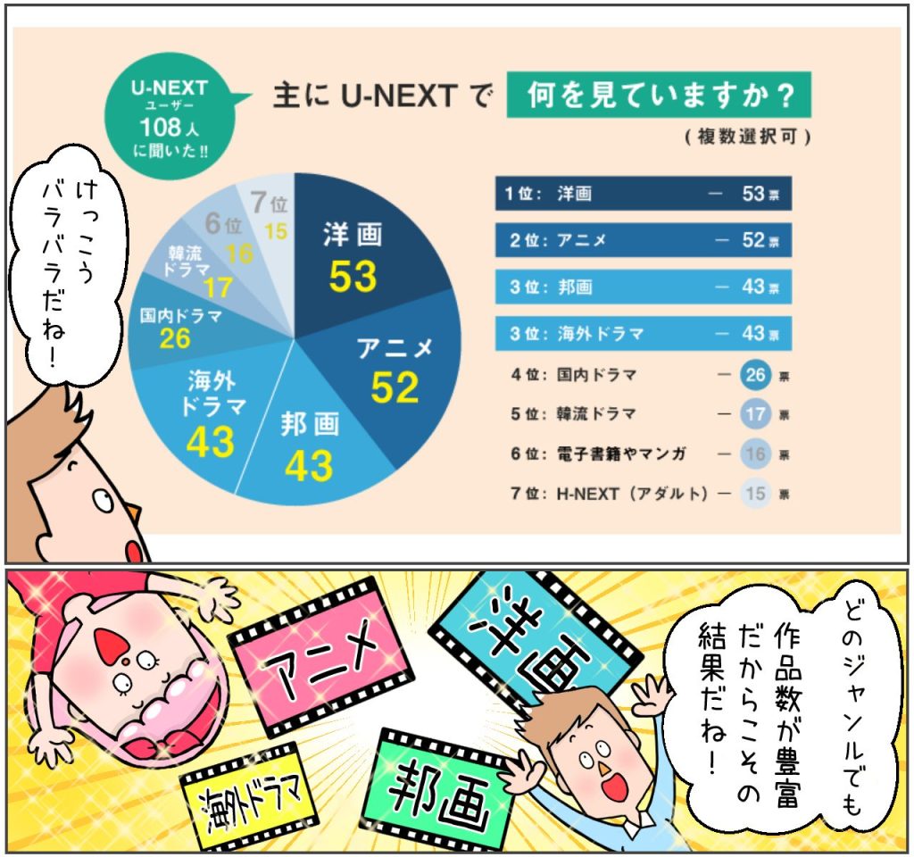 というのもU-NEXTは、どのジャンルでも配信数が多いので、色んな人が色んな目的で入会しているからです。