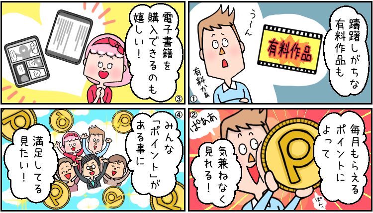 このように最新作を見れるので、毎月もらえるポイントも高評価でした。