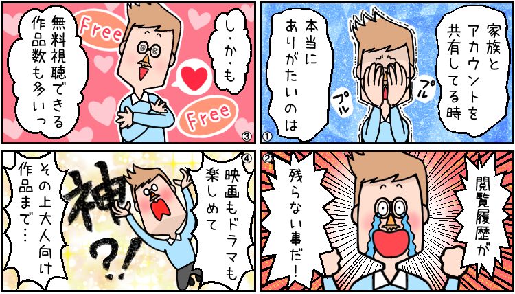 無料で体験できるキャンペーンが不定期ですが、何回も利用できるところがおすすめです。一度有料プランを退会しても、無料体験キャンペーンのメールが届くと登録してしまって、どんどん新作が追加されるので色々見たくなって結局有料会員に戻ってしまいます。